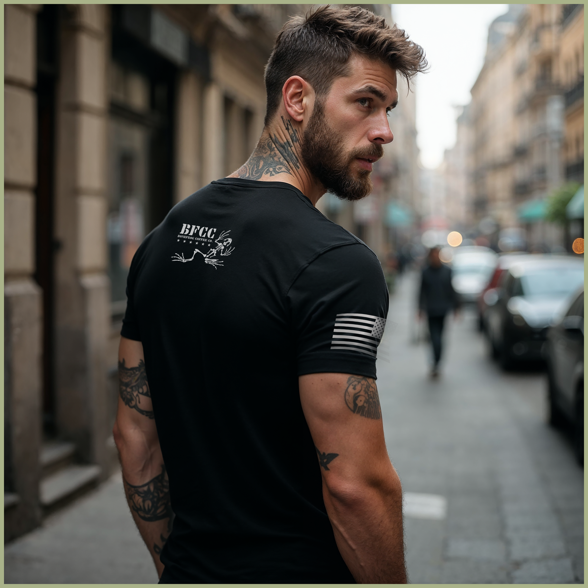 Represent your favorite Veteran-owned coffee company and honor the legacy of our fallen Navy SEAL teammates with our Men’s Vintage Bonefrog® Coffee T-shirt. With the Bonefrog® logo front and center, the American flag on the right sleeve, and the iconic Bonefrog emblem on the back, this t-shirt tells the SEAL stories of valor, service, and sacrifice. Stylish and comfortable for everyday wear, put on the shirt that makes a difference.